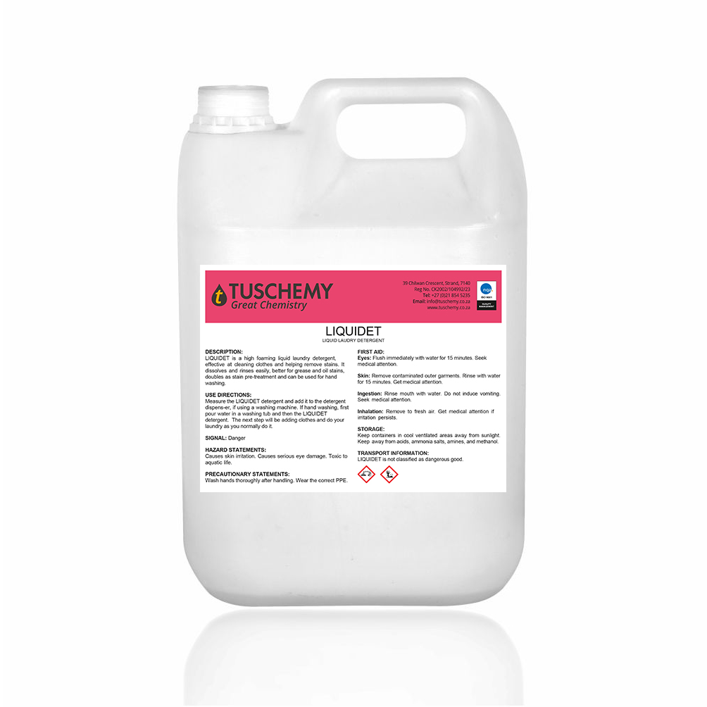 LIQUIDET is a high foaming liquid laundry detergent, effective at cleaning clothes and helping remove stains. It dissolves and rinses easily, better for grease and oil stains, doubles as stain pre-treatment and can be used for hand washing.